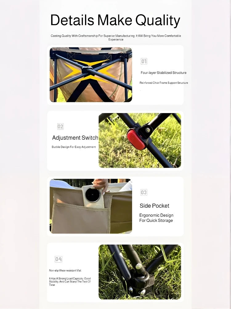 Portable Outdoor Chair with Storage Bag Outdoor Recliner Folding with Leg Support Camping Beach Chair Lunch Break Folding Chair